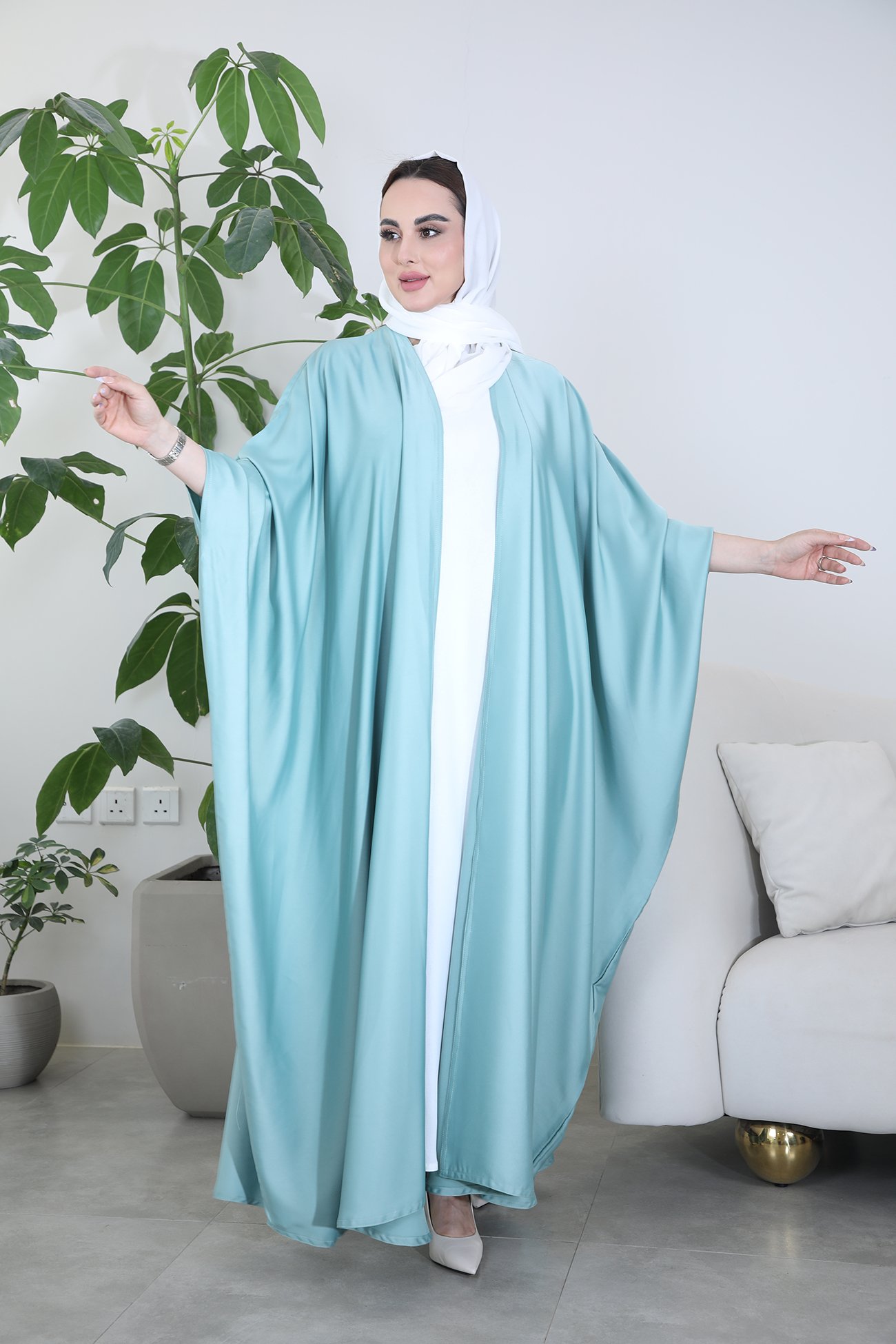 عباية بشت بقماش بلاك بيري باللون تيفاني مصممة بمودل بشت لتمنحك اطلالة مميزة تناسب صيفك من عبايات فريزيا