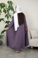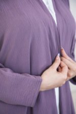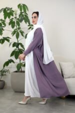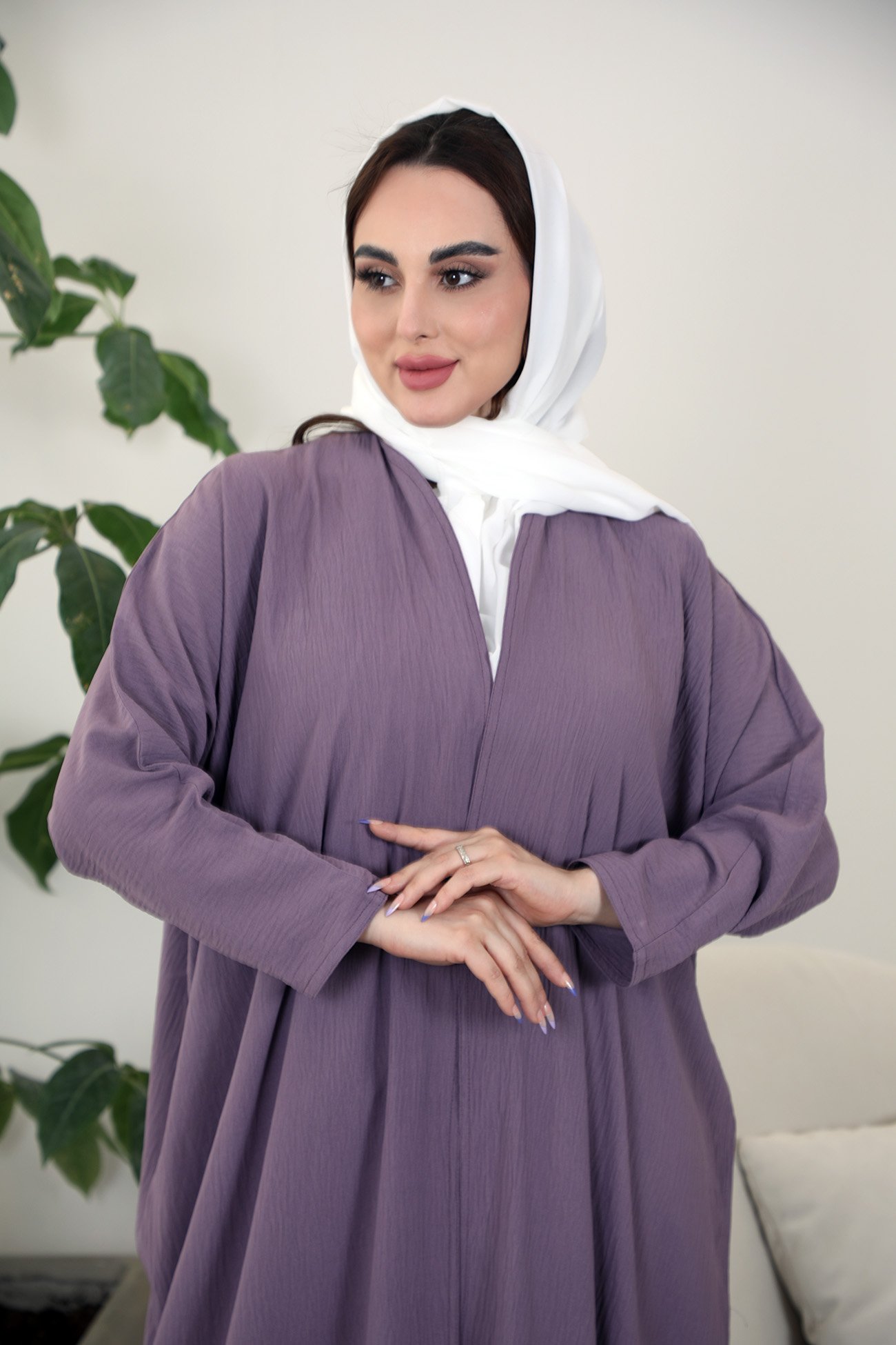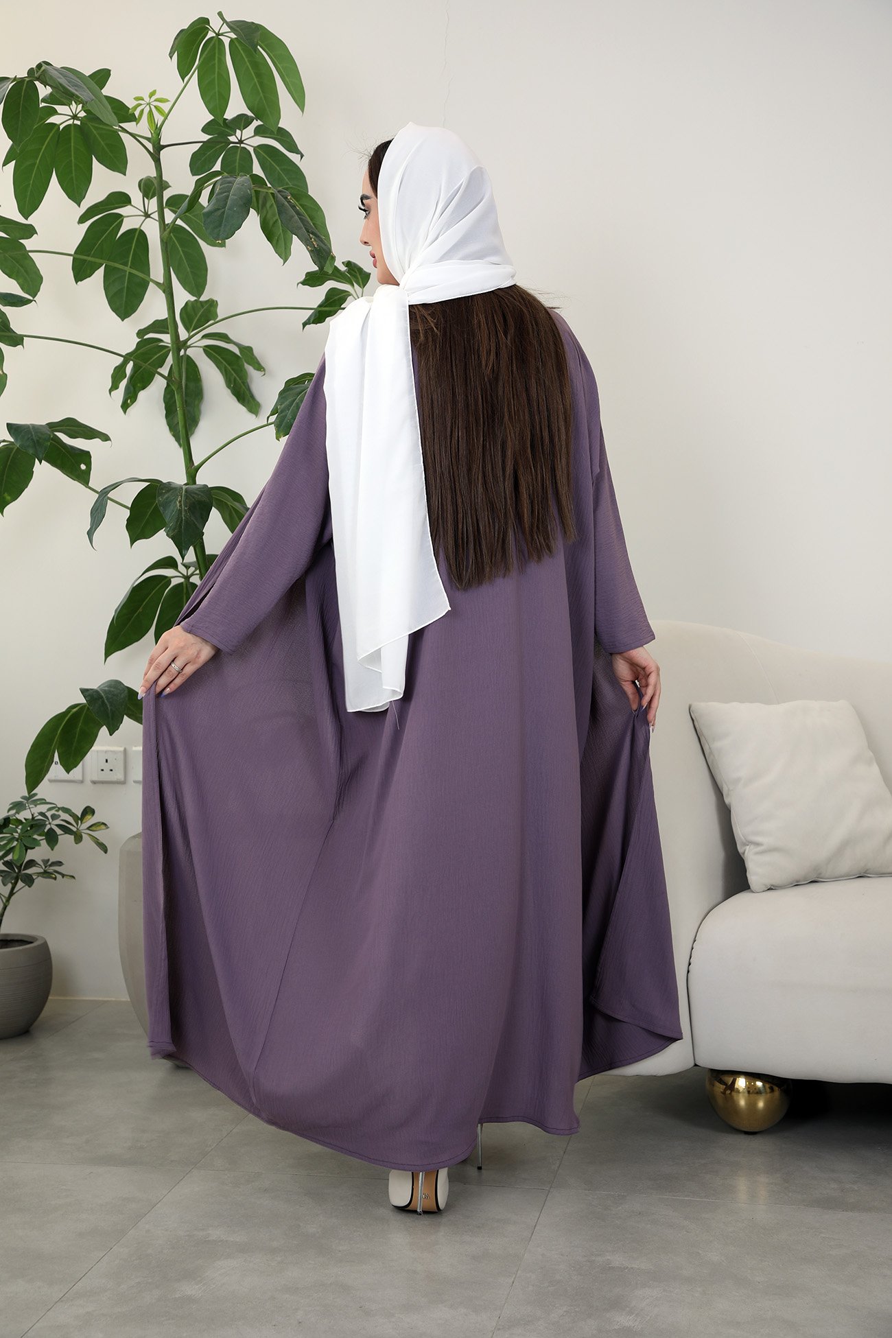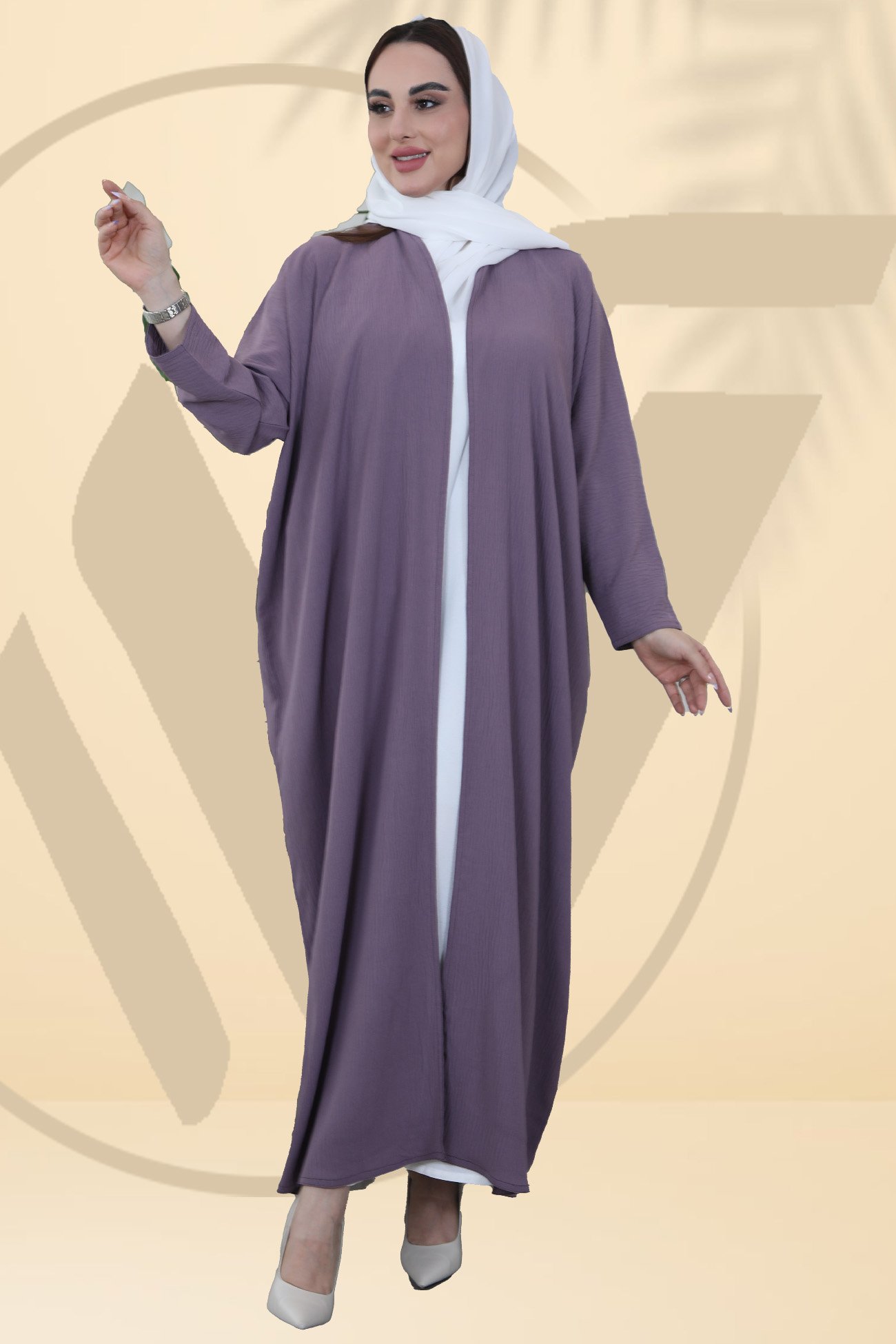 عباية فنون بقماش كريب سعودي فاخر باللون الموف مصممة باناقة بتصميم الفراشة لتمنحك اطلالة مميزة من عبايات فريزيا
