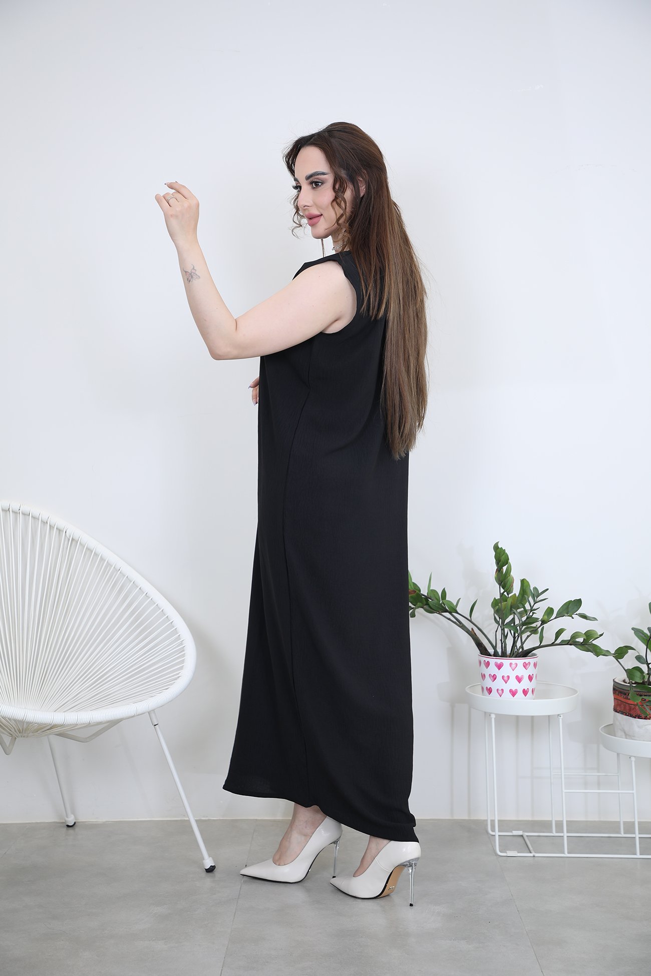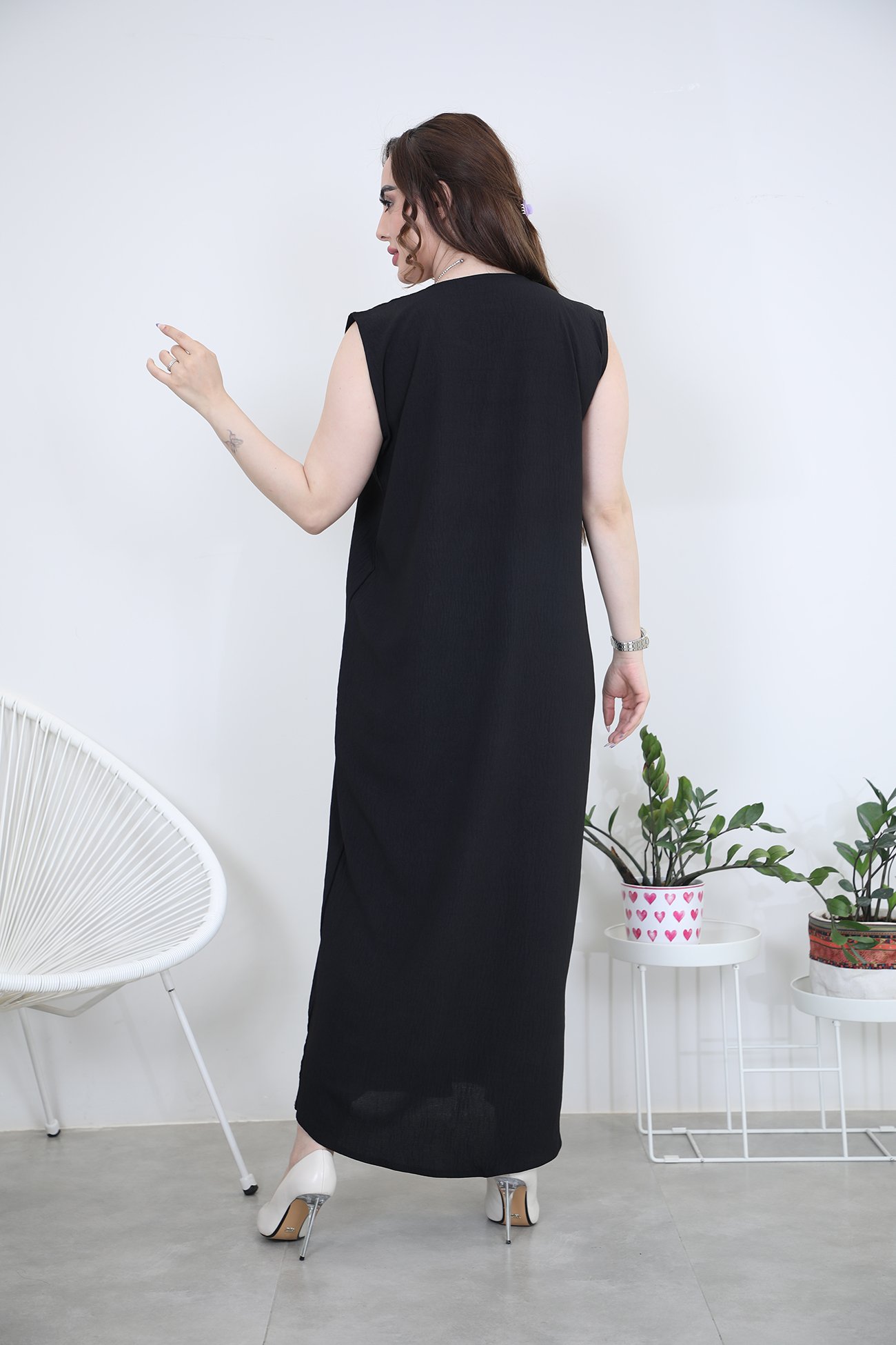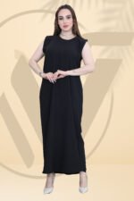 فستان عباية بقماش كريب سعودي الفاخر باللون الاسود القماش مختار بعناية ليناسب أجواء الصيف